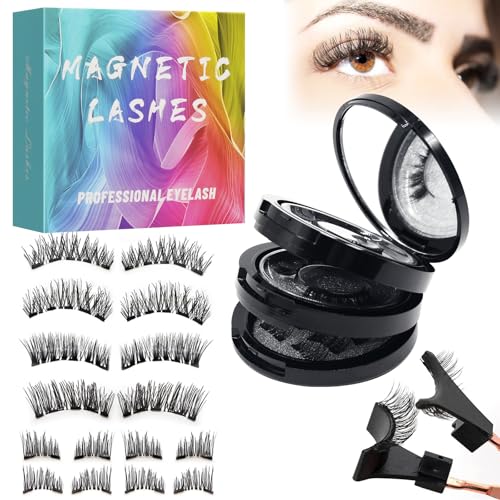 KIKVTER Magnetiska ögonfransar, magnetiska ögonfransar, ögonfransar, magnetiska ögonfransar, magnetiska ögonfransar, 3D-magneter, konstgjorda ögonfransar med tång, återanvändbara hållbara