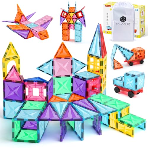 ECHOCUBE Magnetiska Byggklossar, 100 PCS Magnetiska Byggstenar Kakel för Barn, Pedagogiska Byggmagnetleksaker Magnetiska Plattor Julklapp för 3+ år Gamla Pojkar och Flickor