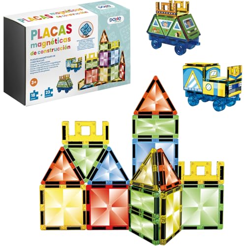DOHE Educa Magnetiska byggblock (18 stycken) - med klistermärken för att göra figurer, 4 färger plattor, pedagogisk leksak för barn i åldrarna 3 till 8 år