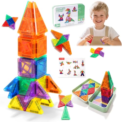 Condis Magnetiska Byggklossar 60 St, Magnetiska Byggstenar Magneter Barn Magnetiska Plattor Leksaker Byggblock för Barn 3 4 5 6 7 åring Flicka Pojke Kille Pedagogiska Byggsatser till Pojkar Flickor