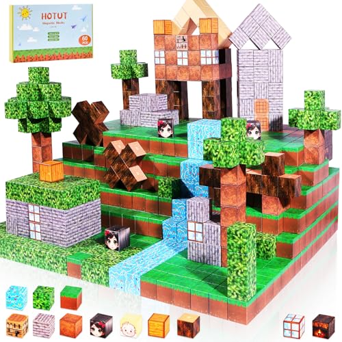 HOTUT Magnetiska byggklossar, 60 delar magnetiska leksaker, bygga gruva magnet, magnetiskt set, Montessori-leksak för pojkar flickor från 3 år, magnetiska plattor, småbarnsleksaker
