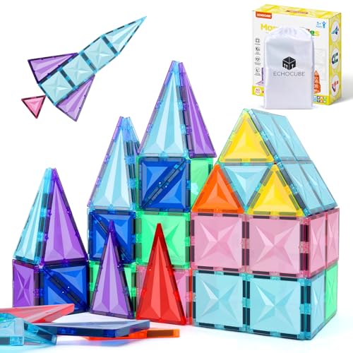 ECHOCUBE Magnetiska Byggklossar, 60 PCS Magnetiska Byggstenar Kakel för Barn, Pedagogiska Byggmagnetleksaker Magnetiska Plattor Julklapp för 3+ år Gamla Pojkar och Flickor