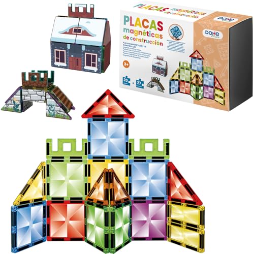 DOHE Educa Magnetiska byggblock (20 stycken) - med klistermärken för att göra figurer, 4 färger plattor, pedagogisk leksak för barn i åldrarna 3 till 8 år