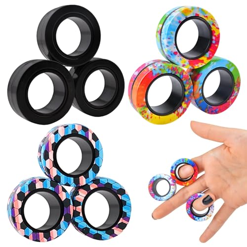9 stycken magnetiska ringar, fidget-leksaksset, anti-stress, ADHD-leksak och magisk fingerring, gåva för vuxna, barn, tonåringar (från 8 år) – sensoriska leksaker mot ångest