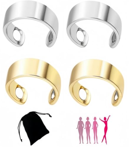 COZERI Lymfdräneringsring 4 stycken justerbara magnetiska ringar för män och kvinnor, terapeutisk magnetisk ring av koppar, magnetiska lymftentgiftningsringar, Koppar, Ej tillämpligt