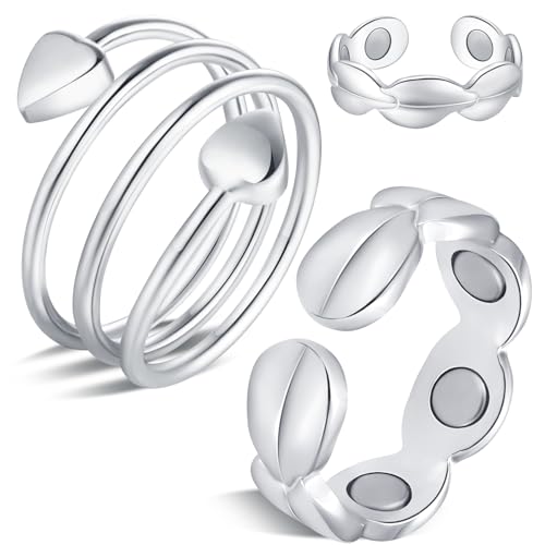 Jeracol 2 st lymfatiska dränering kopparringar för kvinnor i olika design, magnetiska ringar med 7 x ultrastark magnet, 99 % ren koppar justerbara smycken i presentförpackning