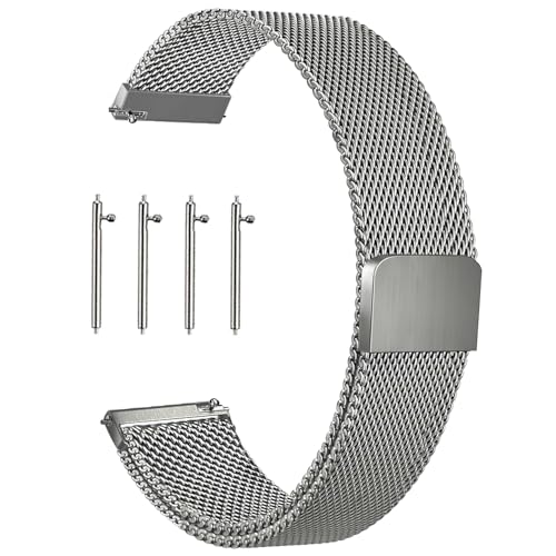 KUBFDL Mesh klockarmband i rostfritt stål 14 mm 16 mm 18 mm 20 mm 22 mm 24 mm armband magnetiskt lås snabbkoppling smartwatch ersättningsarmband för kvinnor män, 20mm, Rostfritt stål