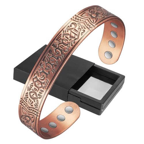 Jeracol Magnetiskt armband i koppar för män kvinnor, livets träd 100 % massiv koppar manschettarmband med 12 3 500 guass-magneter, justerbar storlek brazaletes med smycken presentförpackning