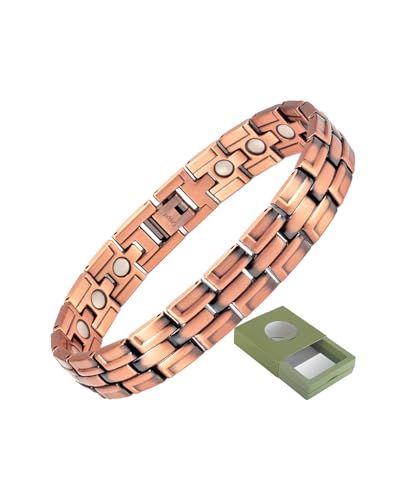 RainSo mäns dubbelrad rent koppar magnetiskt armband justerbart med 3 500 Gauss med presentförpackning och borttagningsverktyg, 21 cm, Koppar