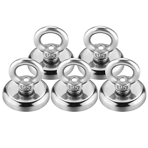 Wukong Stark neodymmagnet med ögla, diameter 32 mm, dragkraft 30 kg, superstark neodym-magnetkrok, 5 st