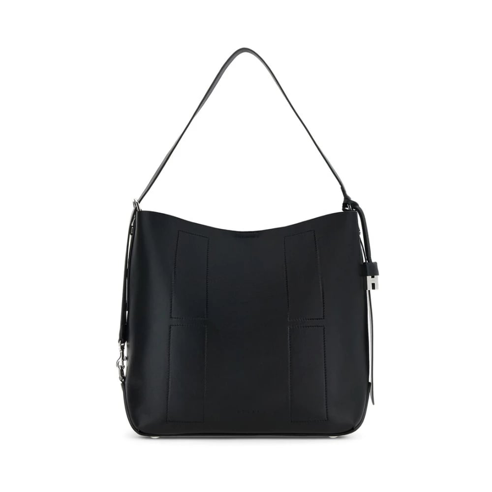 Hogan, Väskor , Dam, ONE Size, Läder, Svart Läderskulderväska med Magnetlås