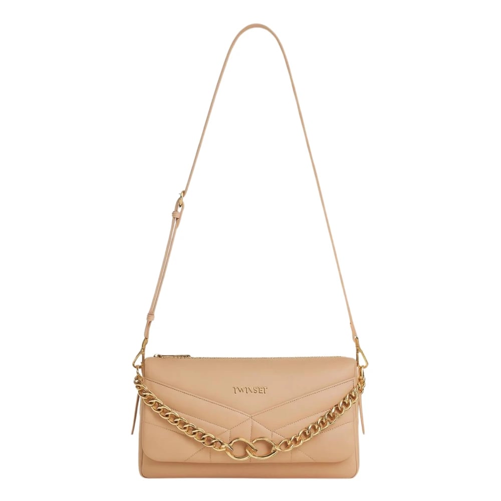Twinset, Väskor , Dam, ONE Size, Läder, Beige Axelväska med Magnetlås