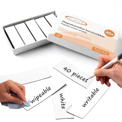 ECENCE 40 Skrivbar magnetremsa - 100mmx30mm Vit - Klisterremsor som kan anpassas i storlek - magnetiska skyltar som går att torka av - magnetiska etiketter för tavlor, kylskåp,