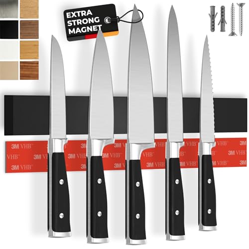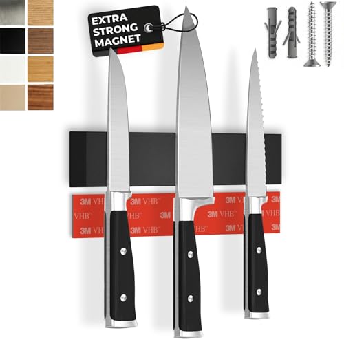 Cucino magnetkniv med extra stark magnet - Jämförelsevinnare 2022 - Enkel montering med 3M självhäftande tejp, självhäftande magnetremsa svart - 40cm