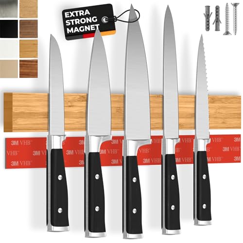 Magnetkniv med extra stark magnet - Jämförelsevinnare 2022 - Enkel montering med 3M självhäftande tejp, självhäftande magnetremsa av bambu - 40cm