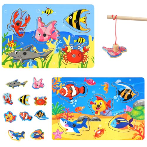 Vicloon Magnetiskt fiskespel, set med 2 fiskeleksaker Montessori leksak från 2 år barnleksak trä magnetspel motorikleksak trä fiskespel från 2 år pedagogisk leksak gåva för barn