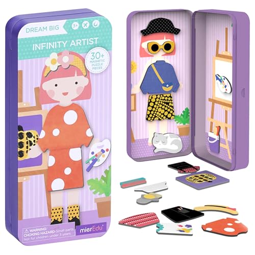 mierEdu Magnetspel Box Dress Up, konstnär att klä på, främjar motorik + fantasi, perfekt för hemmet och som resespel för barn, magnetisk leksak för barn, leksak från 3 år