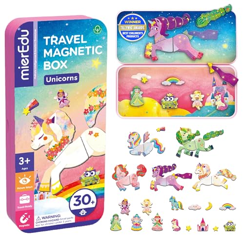 mierEdu Magnetisk leklåda för barn, enhörning från 3 år – magnetbok med 36 delar och 2 scener – magnetspel för flickor och pojkar – perfekt resespel för bil, flygplan och tåg – gåva för barn