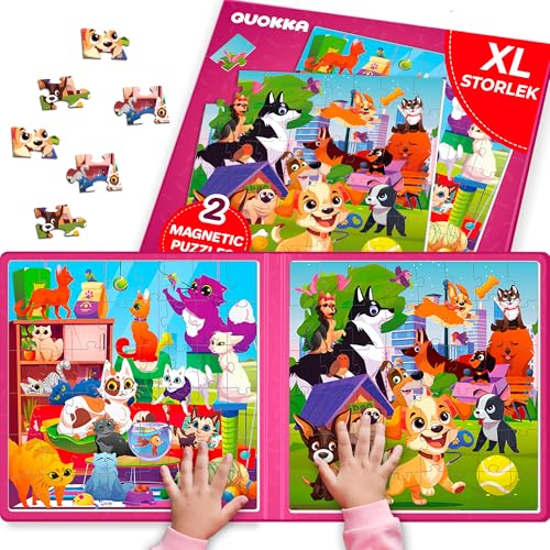 QUOKKA magnetspel från 3 till 4 år - 48-bitars pusselaktivitet för barn på flyg och bilturer - resespel för katter och hundar för barn från 4 5 6 - leksaker för pojkar och flickor
