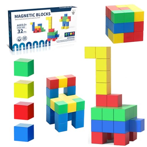 Editbar Redigerbara magnetiska byggstenar för barn, 32 stycken magneter, leksaker, magnetspel, pedagogisk leksak, magnetisk kub för gåva från 3 4 5 6 7 år byggklossar barnleksaker, ED424