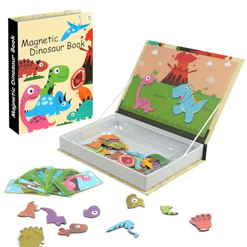 Aolso Magnetiska pussel för barn, 3–5 års magnetspel, dinosaurier magnetpusselspel, djurpusselbok för småbarn, resespel och resleksaker, pedagogisk magnet-gåva för biltrippen