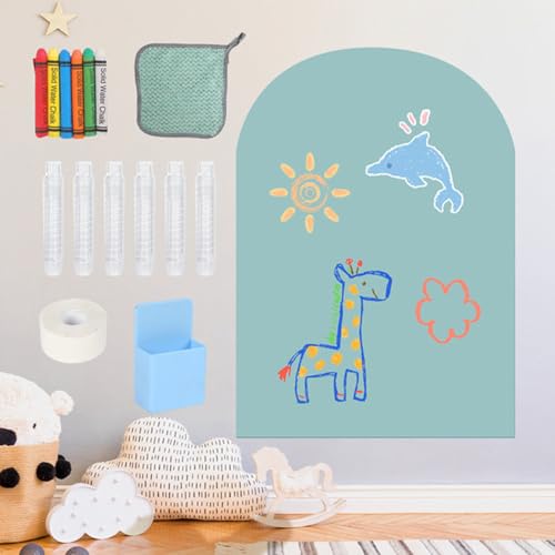 Magnetvägg för barn, magnettavla för barn, självhäftande i bågform 80 × 100 cm, magnetisk vägg självhäftande med 6 vattenlösliga kritor och 1 rengöringsduk (ljusblå)