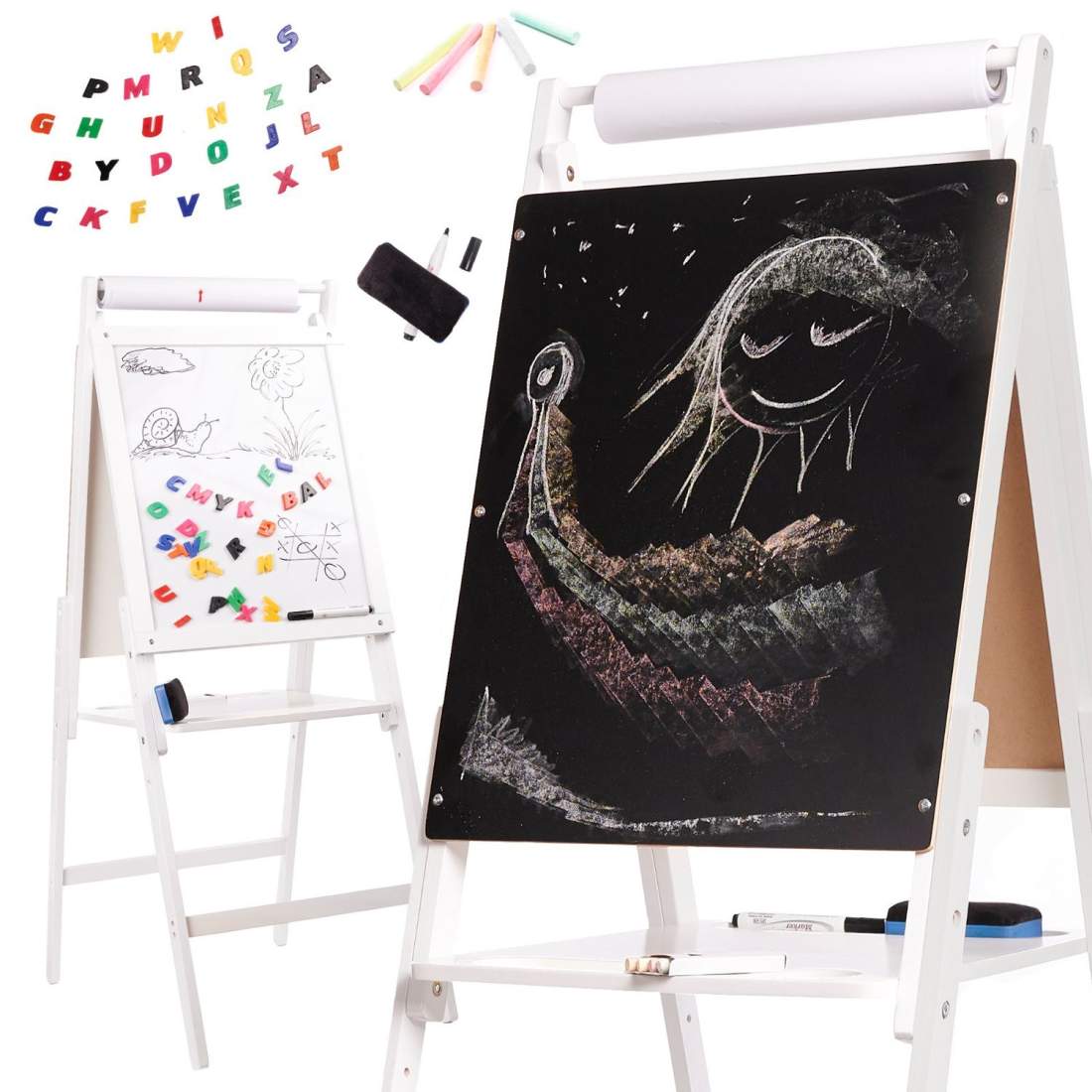 COSTWAY tavla för barn, dubbelsidig barntavla justerbar höjd med whiteboard och krittavla, stående tavla barn, magnettavla från 2 år (grön blå)