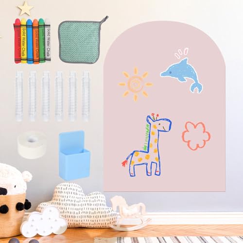 Magnetvägg för barn, magnettavla för barn, självhäftande i bågform 80 × 100 cm, magnetisk vägg självhäftande med 6 vattenlösliga kritor och 1 rengöringsduk (rosa)