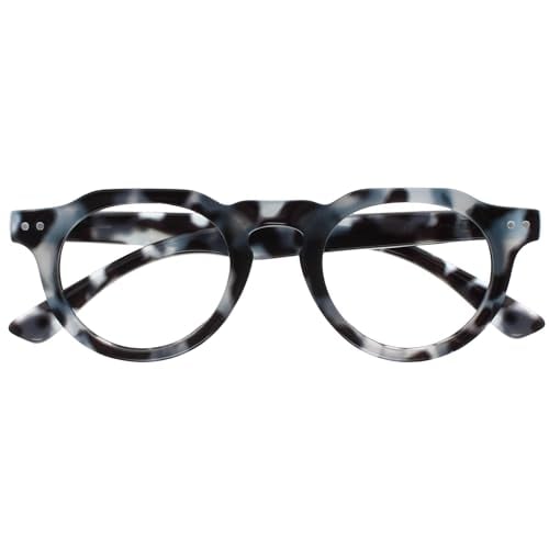 OPULIZE Zen läsglasögon coola runda ramar fjädergångjärn reptåliga män kvinnor, 1-pack matt klar kristall framsida med matt svarta armar, +3.00 Magnification