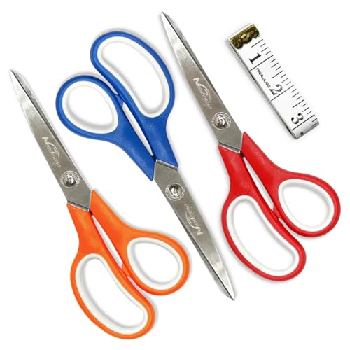 Magnifik sax – [Förpackning med 3] tygsaxar teflonbelagd rostfritt stål kraftig sax med TRP mjukt grepphandtag (3-pack saxar och mått)