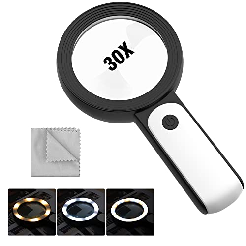 MoKo Magnifying Glass with Light, 30X Large Magnify Glass 18 LED Handheld Magnifier with 3 Modes, Illuminated Lighted Magnifying Glass for Reading Books, Magazines, Newspapers, Black