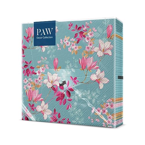 PAW – servetter 3-lager (33 x 33 cm) I 20 stycken I perfekt för födelsedagar, fester, bröllop, nattvard och fester I pappersservetter färgglada – blommor, magnolia, trädgård I färg: Magnolia