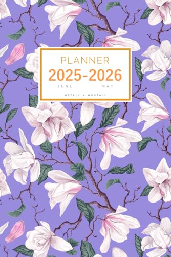 Planner June 2025-2026 May: 6x9 Weekly and Monthly Organizer | Realistic Magnolia Flower Design Blue-Violet