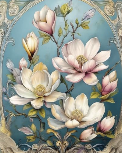 Collection D'Art CD5292 Korsstygns-kit, Magnolia blommor, 40 x 40 cm
