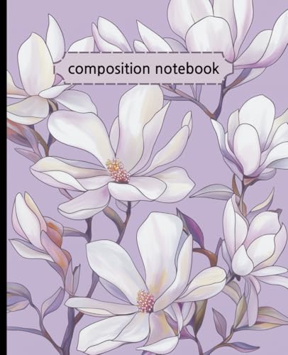 composition notebook: Flower pattern, magnolia flower, purple color note cover, Floral Botanical illustration journal with 120 college ruled ,120 lined pages