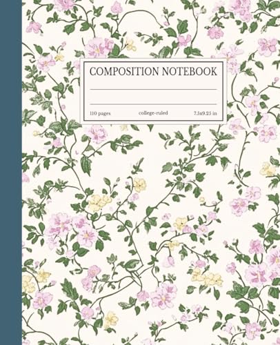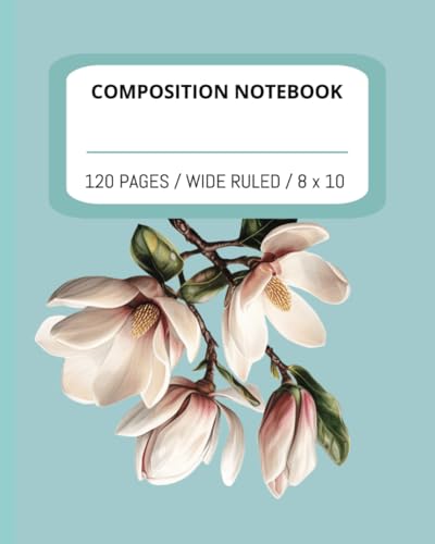 Composition Notebook College Ruled: Magnolia Flower Vintage Botanical Illustration | Aesthetic Floral Journal for School, College & Work | 7.5x9.25 in | 110 Pages