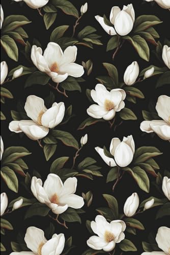 Black Magnolia Flowers: 6 x 9 Inches 140-page Lined Matte Paperback