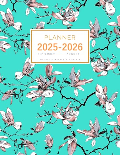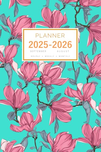 Planner September 2025-2026 August: 6x9 Medium Notebook Organizer with Hourly Time Slots | Spring Magnolia Flower Design Turquoise