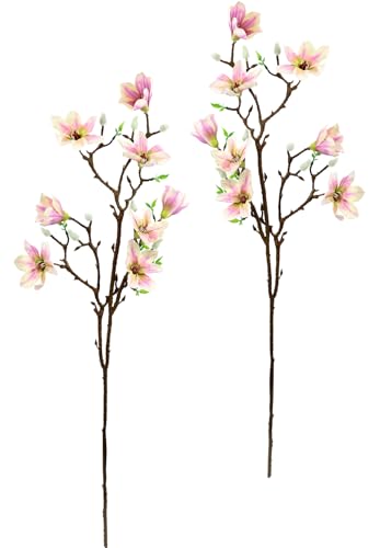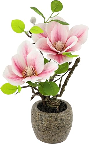 Konstgjord magnolia i kruka 33 cm som äkta dekoration konstgjorda blommor blomma inomhusväxt träd liten gåva magnoliablommor vårblomma blad konstgjord växt vårdekoration vårblomma krukväxt, rosa