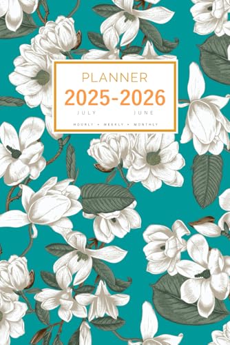 Planner July 2025-2026 June: 6x9 Medium Notebook Organizer with Hourly Time Slots | Beautiful Magnolia Flower Design Teal
