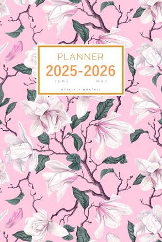 Planner June 2025-2026 May: 6x9 Weekly and Monthly Organizer | Realistic Magnolia Flower Design Pink
