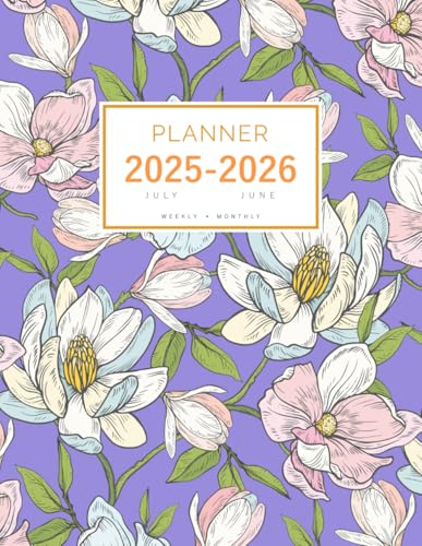 Planner July 2025-2026 June: 8.5 x 11 Weekly and Monthly Organizer | Magnolia Flower Garden Design Blue-Violet