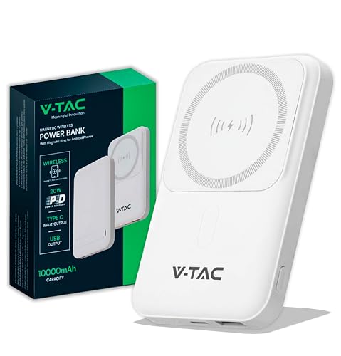 V-TAC Magnetisk powerbank kompatibel med MagSafe - 10 000 mAh - PD 20 W snabbladdning - externt batteri för Apple iPhone 12/13/14/15/16 Mini/Pro/Max - vit