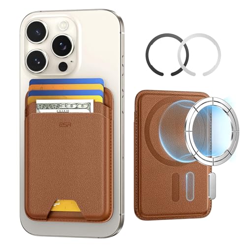 ESR Magnetisk plånbok (HaloLock), kompatibel med MagSafe plånbok, för iPhone plånbok med justerbart stativ, för iPhone 15/14/13/12-serien, ej för iPhone 13/12 mini, 3 korthållare, veganläder, brun