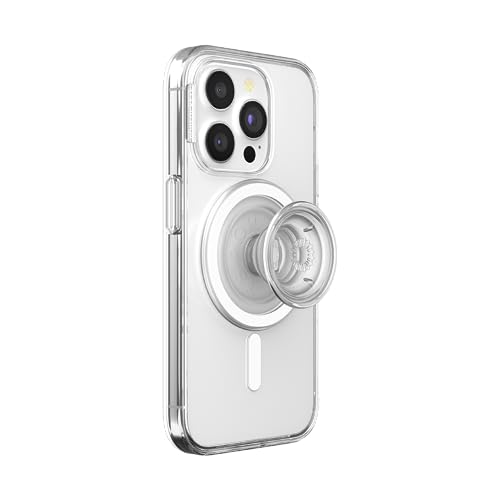 PopSockets iPhone 15 Pro fodral med telefongrepp och bild kompatibel med MagSafe, telefonfodral för iPhone 15 Pro, trådlös laddning kompatibel – klar