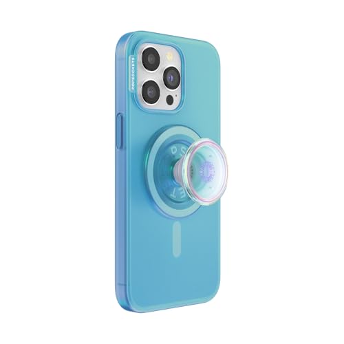 PopSockets iPhone 15 Pro Max fodral med telefongrepp och bild kompatibel med MagSafe, telefonfodral för iPhone 15 Pro Max, trådlös laddning kompatibel – opalescent blå