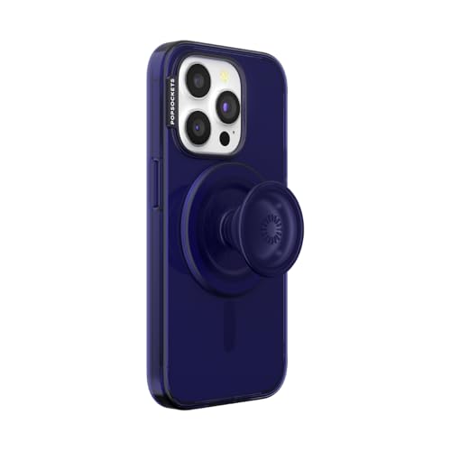 PopSockets iPhone 15 Pro fodral med telefongrepp och bild kompatibel med MagSafe, telefonfodral för iPhone 15 Pro, trådlös laddning kompatibel – fransk marin