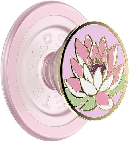 PopSockets telefongrepp kompatibel med MagSafe, telefonhållare, trådlös laddning kompatibel, emalj – vattenlilja