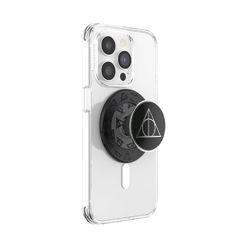 PopSockets: PopGrip Round för MagSafe - Adapterring för MagSafe Ingår -Hopfällbar Stativ och Grepp för Smartphone och Fodral med en Swappable Top - Enamel Deathly Hallows