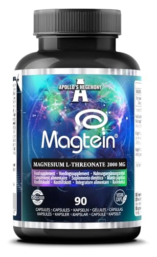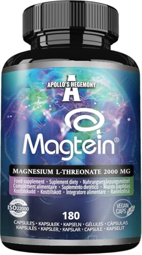 Magtein® Magnesium L-treonat 144 mg per daglig dos - 180 vegankapslar - 60-dagars leverans - för stöd för kognitiv funktion - av Apollos Hegemony